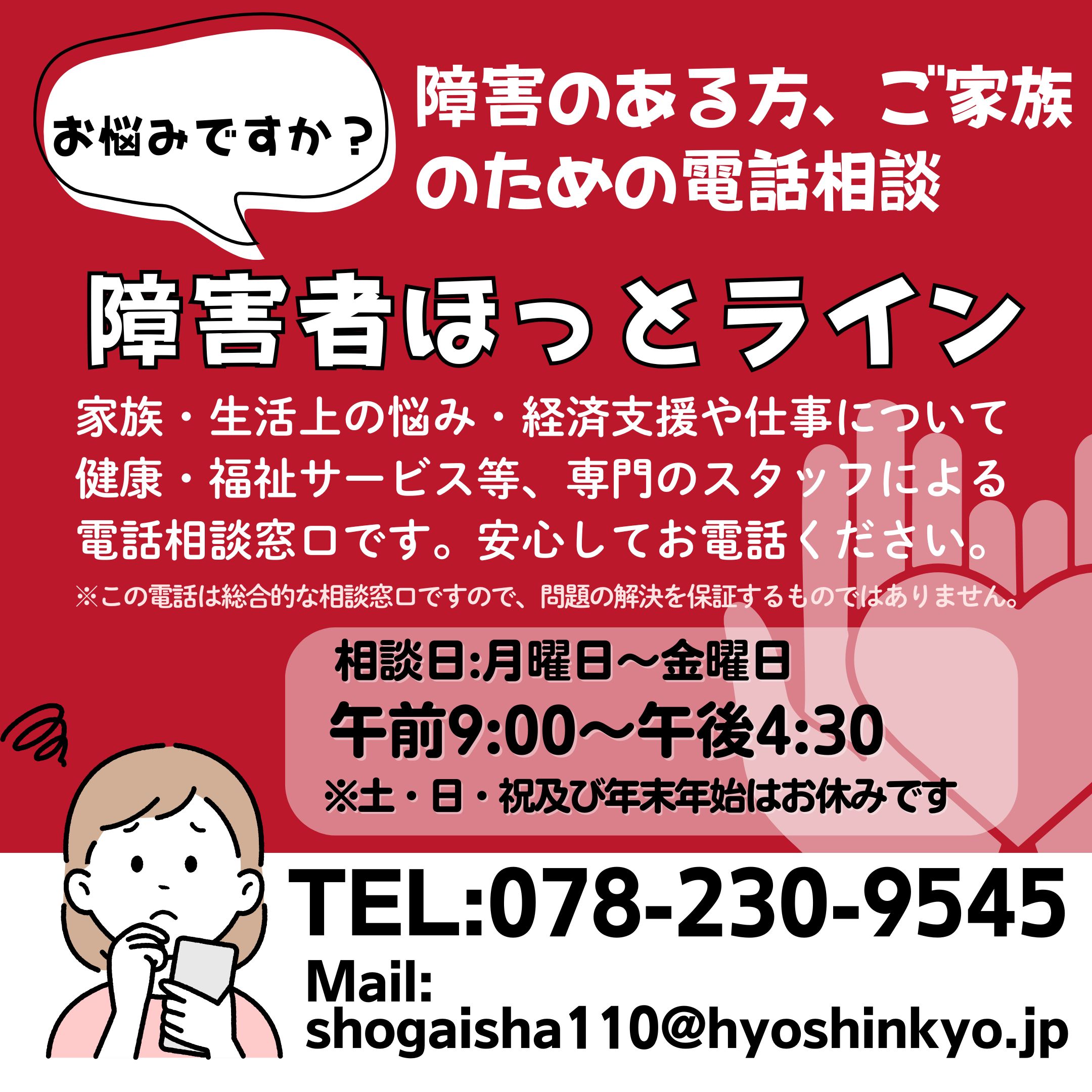 【お知らせ】障害者ほっとラインご利用時間…