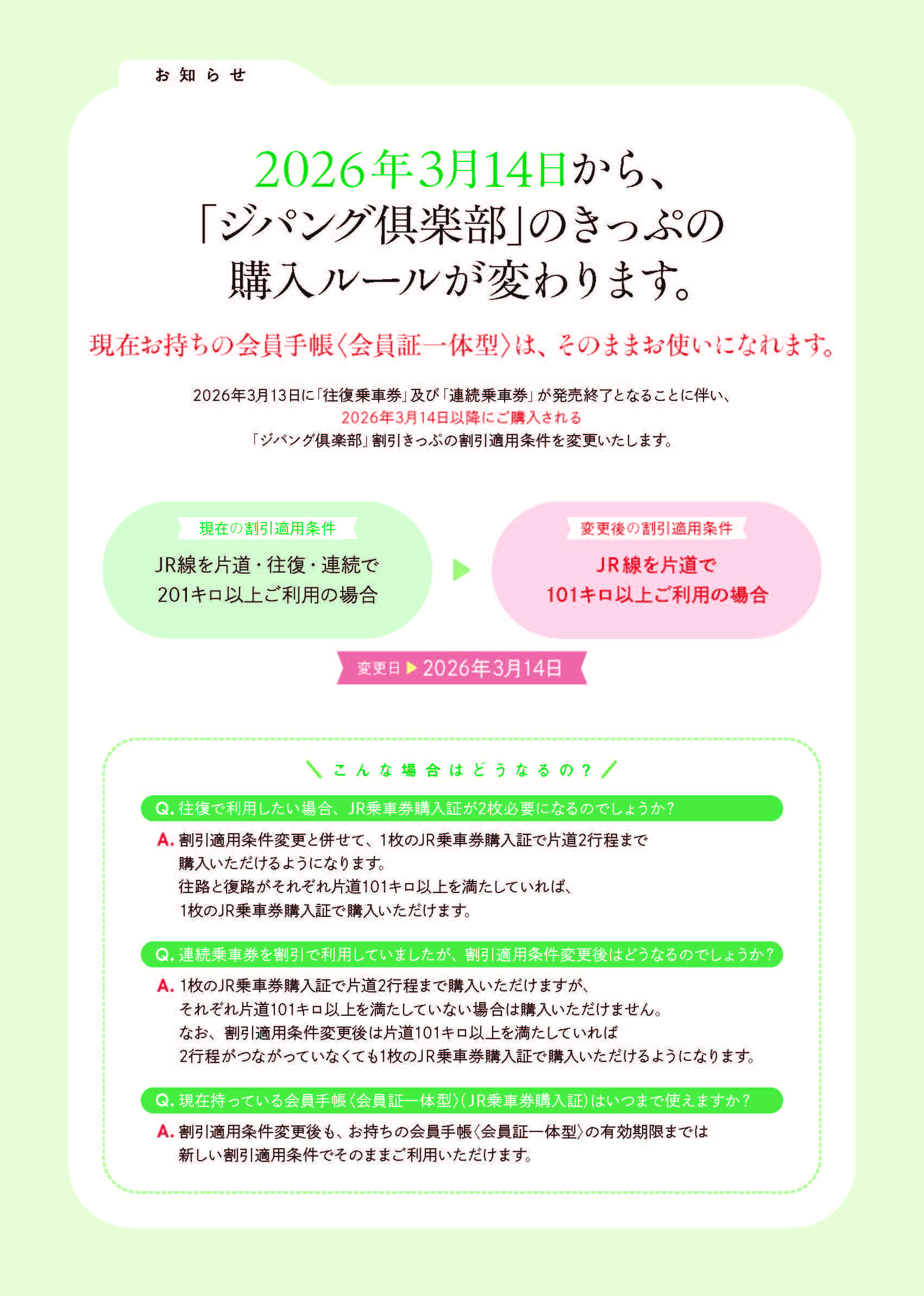 ※住所等の変更がある方は、ジパング倶楽部特別会員申込書(更新用)にご記入の上、当協会まで送付してください。